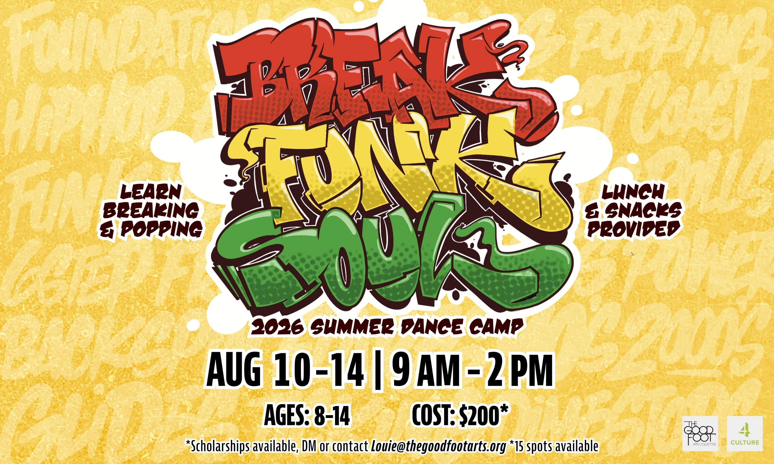 During this week-long dance camp participants will learn the foundational movements, techniques, and culture of Breaking with B-Girl Sacred Fire, B-Boy Swiss, and Likwit Louie along with Popping and Locking with Chris Kaku.